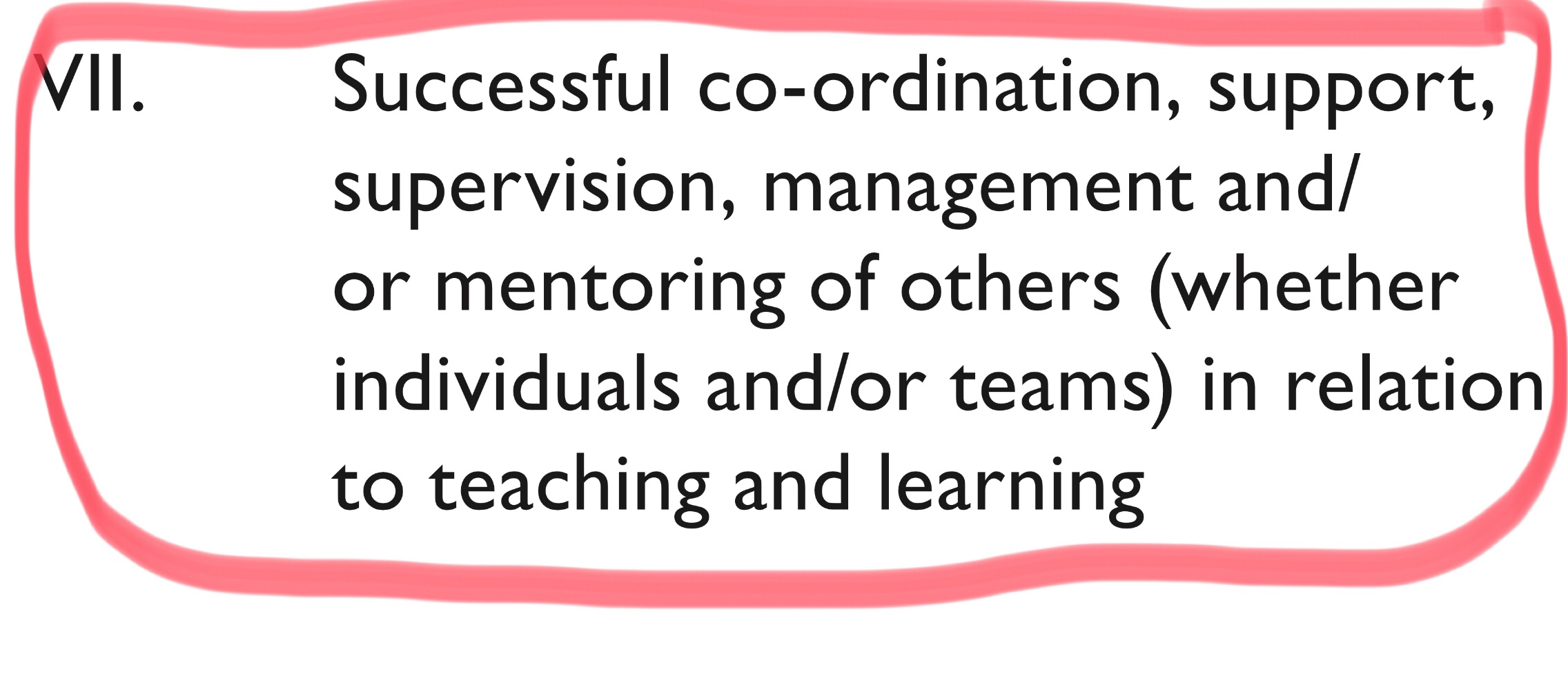 In my experience, Senior Fellow (SFHEA) applicants often struggle to show D3vii) – this is the criterion that relates to supporting and influencing others. D3 vii) is a key differentiator between Senior Fellowship and Fellowship. It is therefore really important!