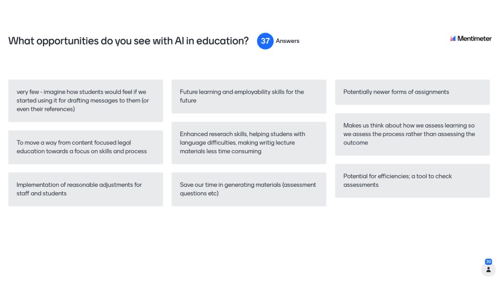 Yesterday I had the pleasure of presenting ”Exploring our response to AI in higher education” to the Connecting Legal Education Network.